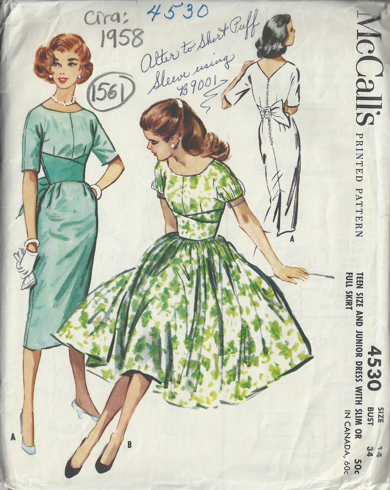 1958 Vintage Sewing Pattern B34 Dress 1561 Mccalls 4530 Etsy